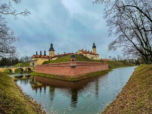 Величественный Мирский замок начала XVI в. построен в виде четырёхугольника с мощными замковыми стенами и башнями по углам. Замок стоит на берегу живописного озера, его яркий архитектурный облик оставляет незабываемые впечатления – и чрезвычайно фотогеничен! В замке представлена материальная культура Великого княжества Литовского, охотничьи коллекции, рыцарские доспехи.