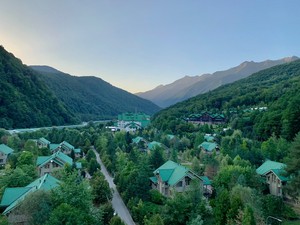 Экскурсия на Красную Поляну. По живописной горной дороге туристов довезут до посёлка Красная Поляна. Расположенный на высоте 530 м над уровнем моря, посёлок окружен живописными горами высотой более 2000 м. Комбинация гор, ледников и озёр, спускающихся к Чёрному морю с его мягким климатом, придаёт этому месту необычайную красоту. Снежные шапки горных вершин, говорливые реки и ручьи, чистейший горный воздух придают необыкновенный колорит этим местам.